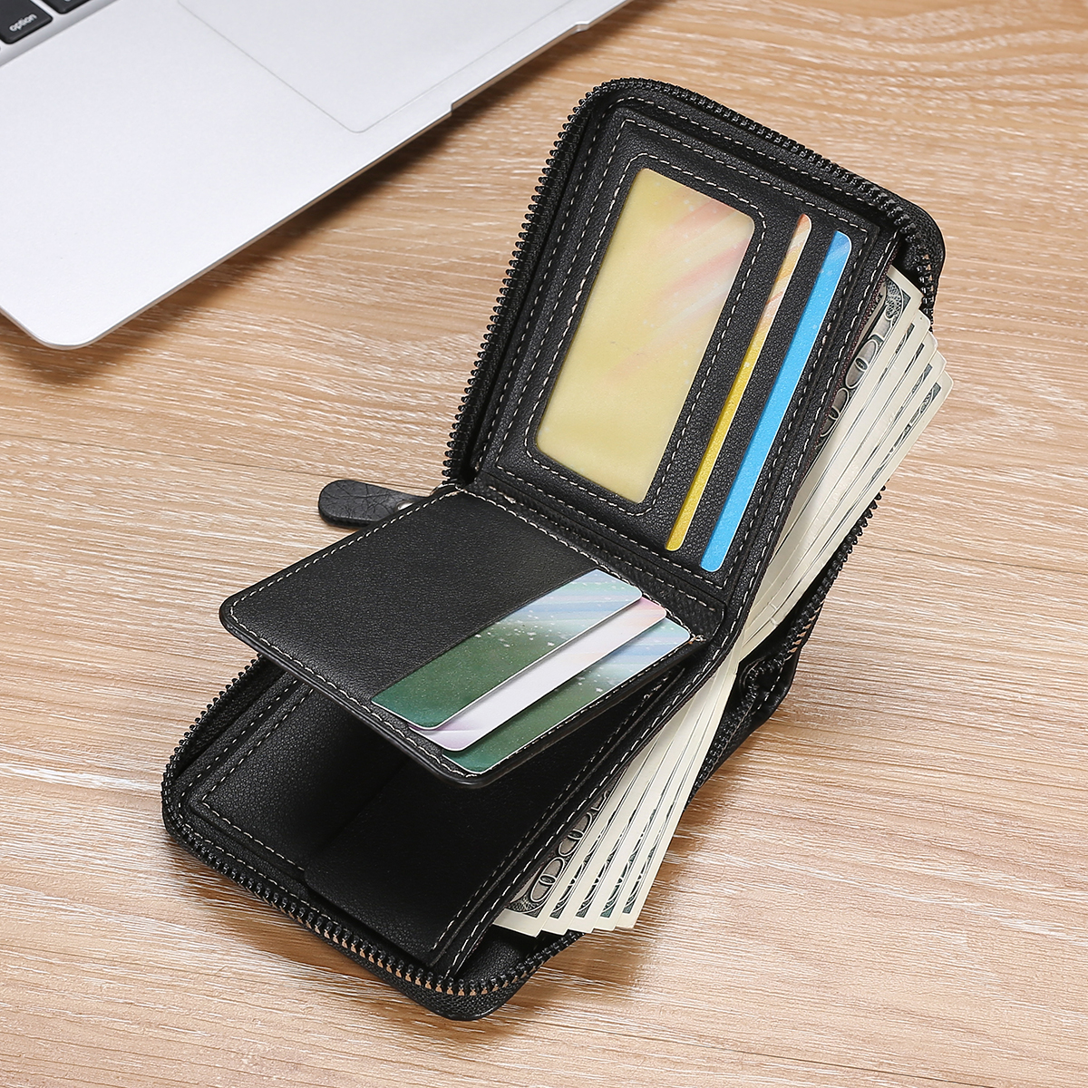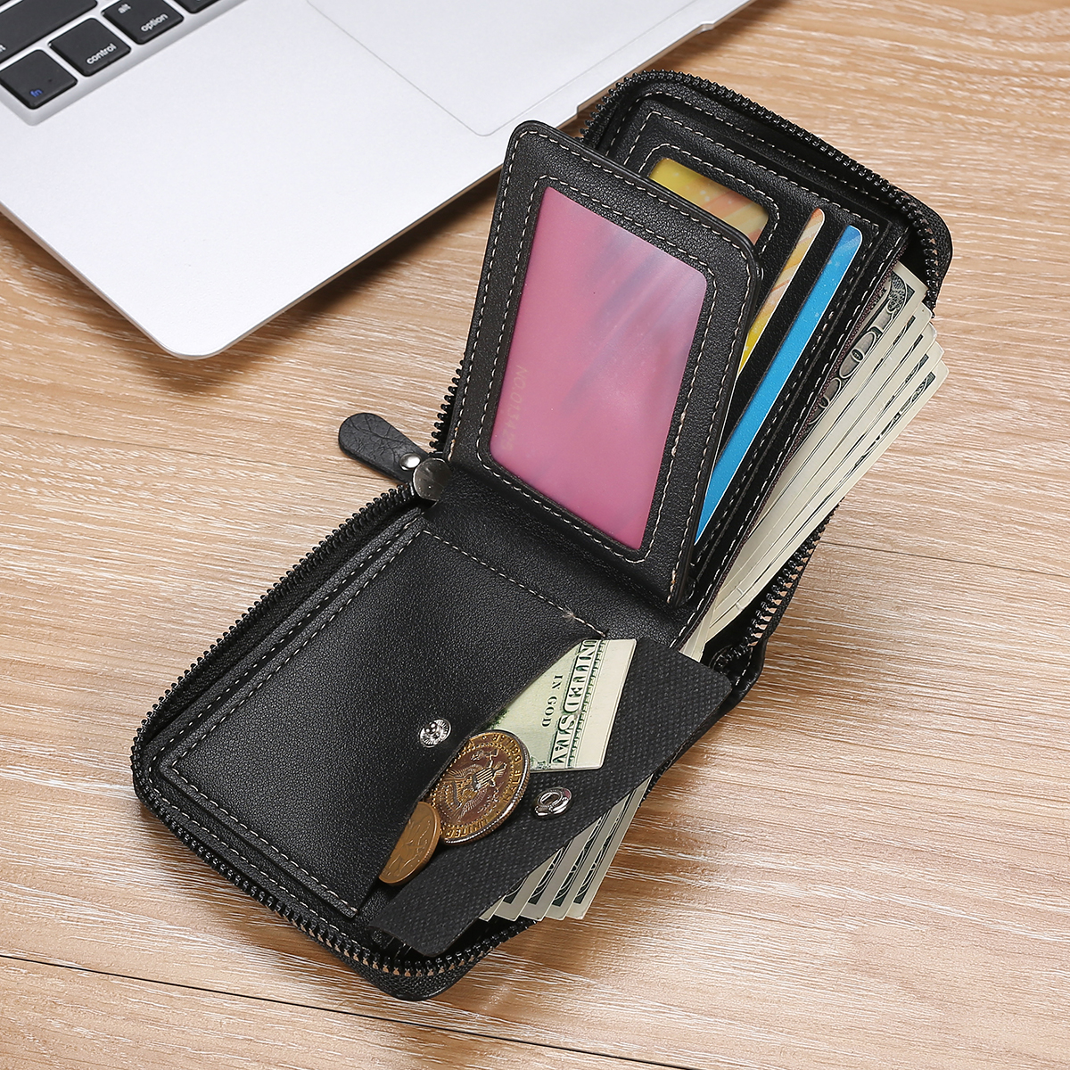 Color: Light brown light brown True to description: true to description Leather material: leather Men's short wallet with zipper, many compartments, fashionable design for men (ah, women are fine :) )