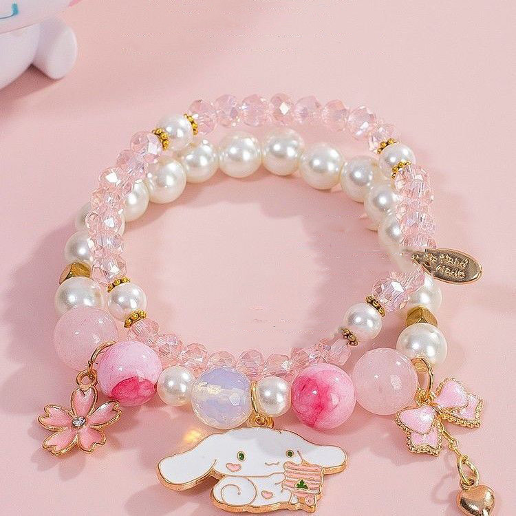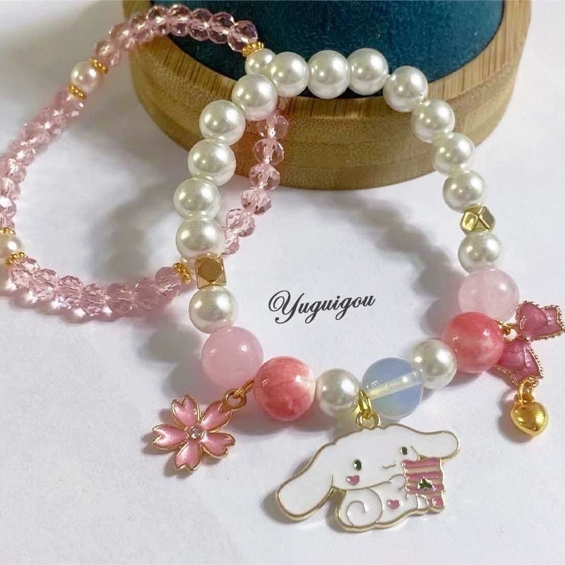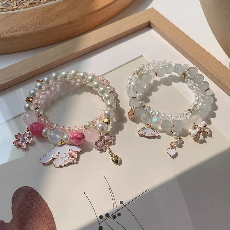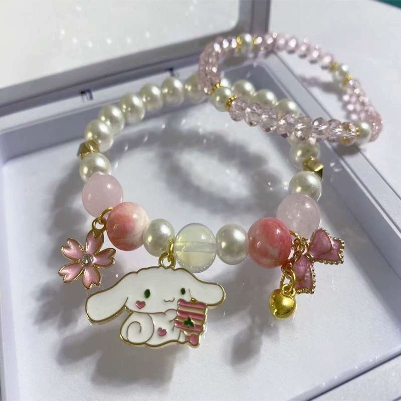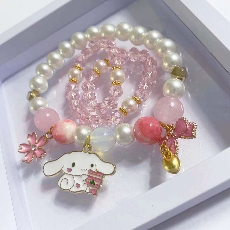 2pcs/Set Sanrio Bracelet Anime Melody Kuromi Cinnamoroll Crystal Beads Bracelet Girl Ins Jewelry Couple Sanrio Kids Bracelet