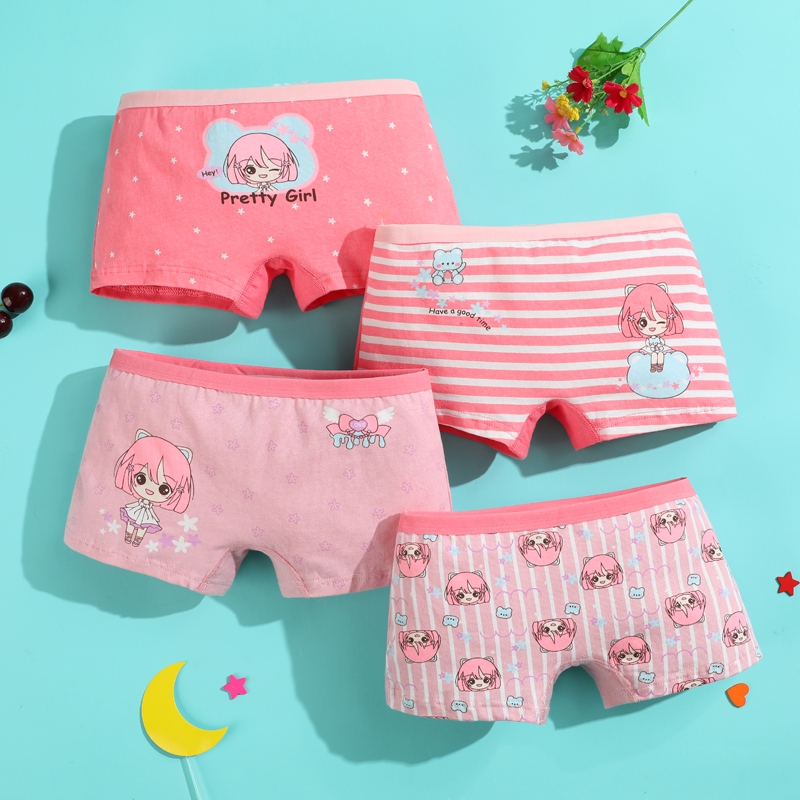 4 Pcs Kids Girl Panties Soft Cotton Baby Girl Underwear Boxer Cute Cartoon New Design Underpants