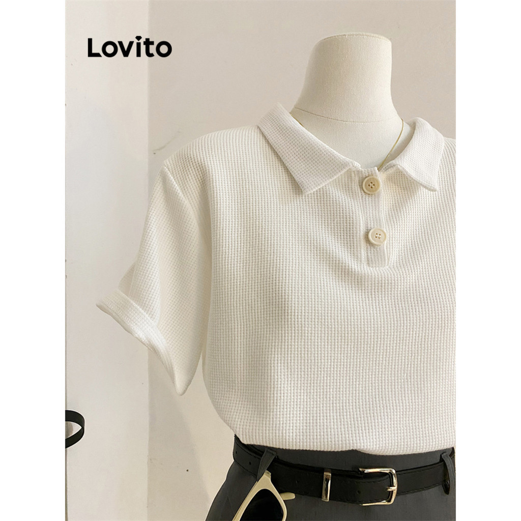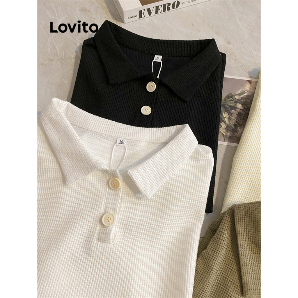 Lovito Casual Plain -Waffle Knit -Polo T-Shirt for Women L68ED039 (Multi-color)