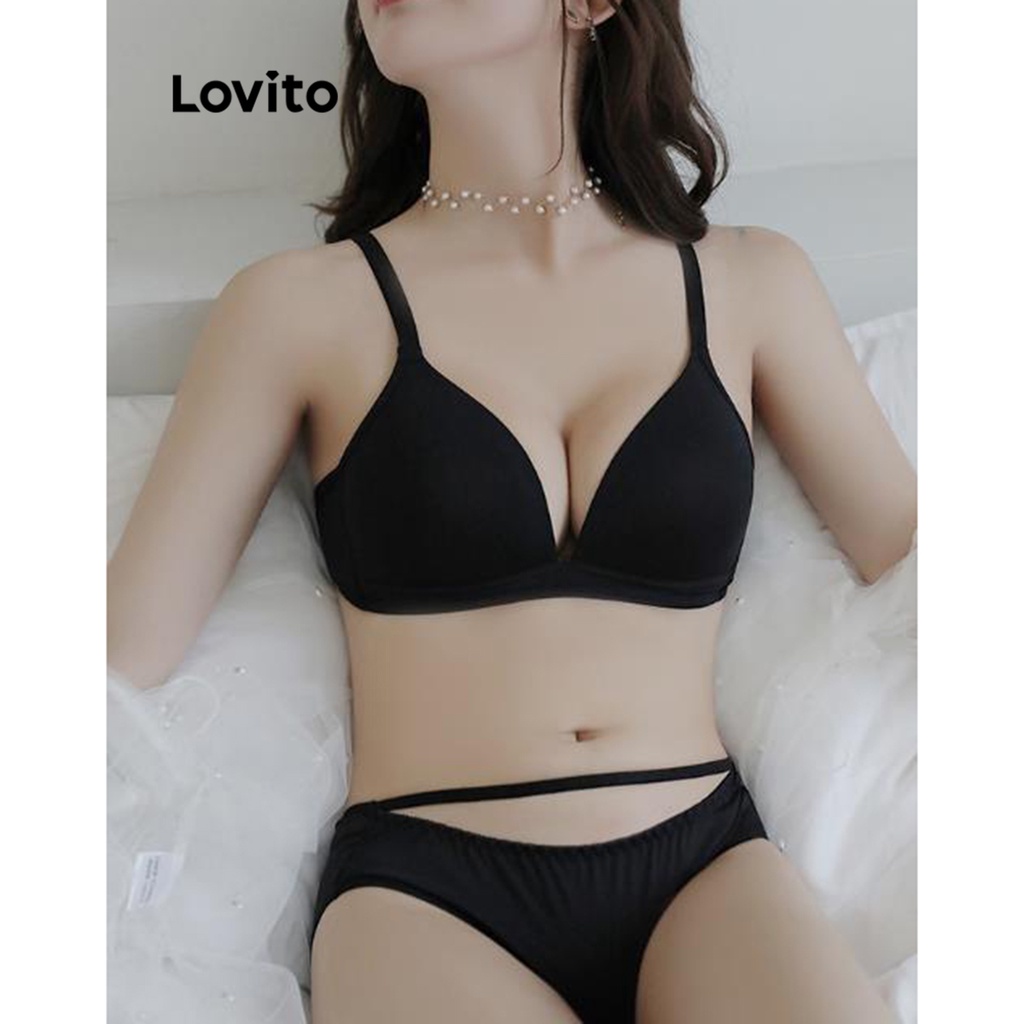 Lovito Casual Plain Basic Bralette for Women LNE39113 (Apricot/Light Green/Light Blue/Black)