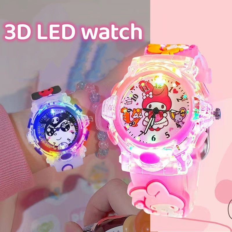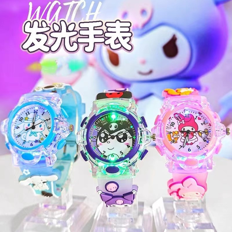New Epoxy Sanrio Kuromi Cinnamoroll Melody Unicorn Watch for Student Kids Girls and Boys Watch Luminous Glow in The Dark Kids Gift Watch with LED Light