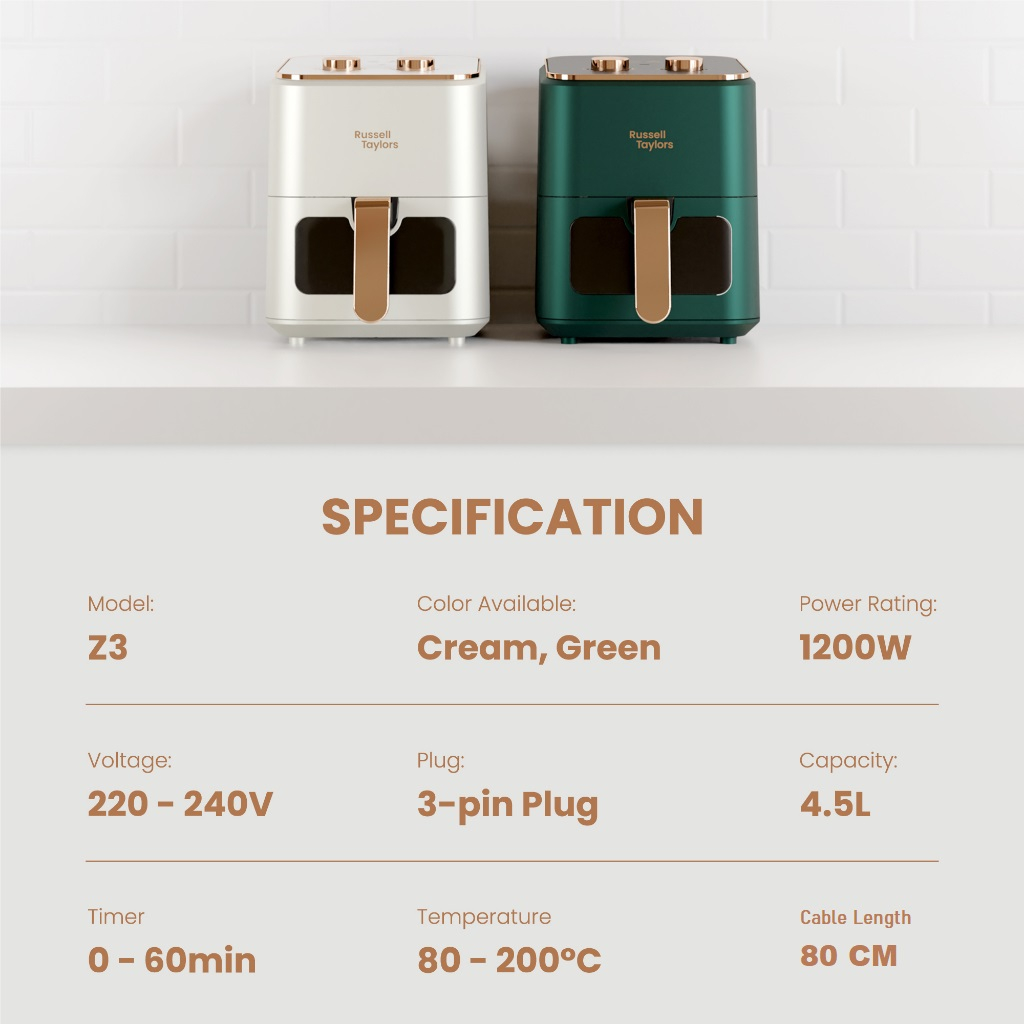 Russell Taylors Retro Series 3D Visible Window Air Fryer Large (4.5L) Z3