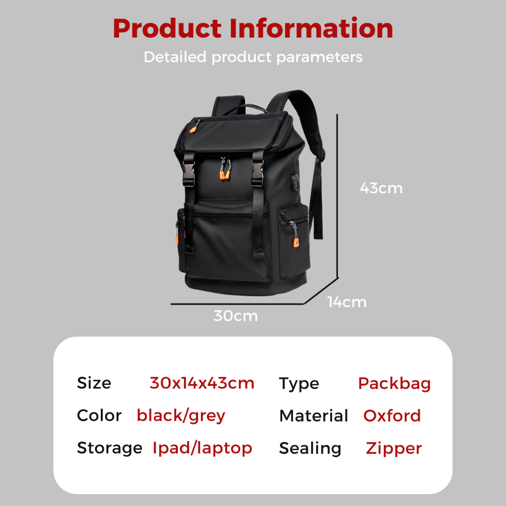 【SG Local】Large Backpack Lightweight Travel Laptop Backpack 15.6 inch Waterproof with Powerbank USB Slot