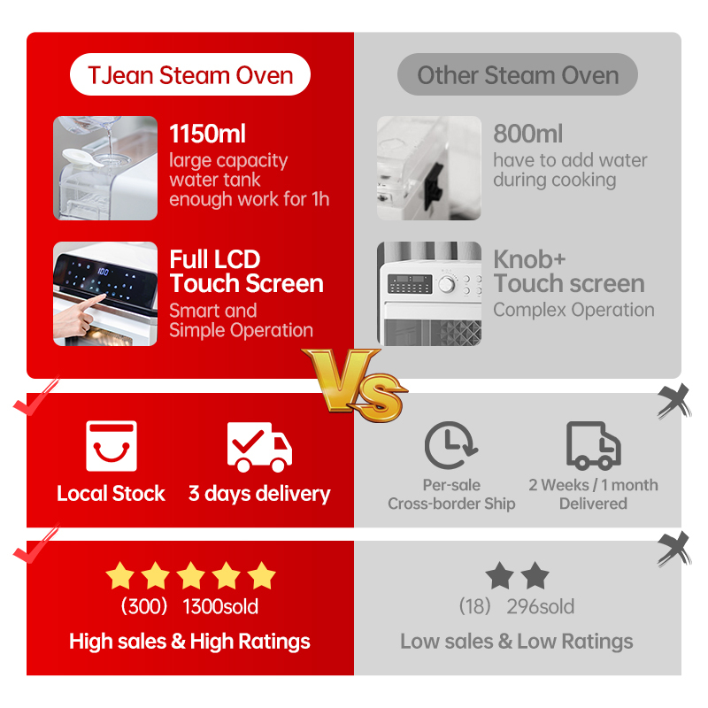 Performance:Excellent Best Feature(s):User friendly with LCD smart touch screen display, self cleaning function Value For Money:YES My sis bought TJean steam air fryer oven in Oct 2022 and I was impressed by its function and performance. I have been eyeing it for a loooong time and finally bought it during 09.09. Paid $187 after all vouchers applied and redeemed Shopee coins. Due to space constraints in the kitchen, i do not own any air fryer nor steamer before. Have always use the traditional way - wok to steam food. Glad that this product combines steaming and air frying in one. Looking forward to cooking more healthier and tastier meals with this pdt. Highly recommended!! ??????