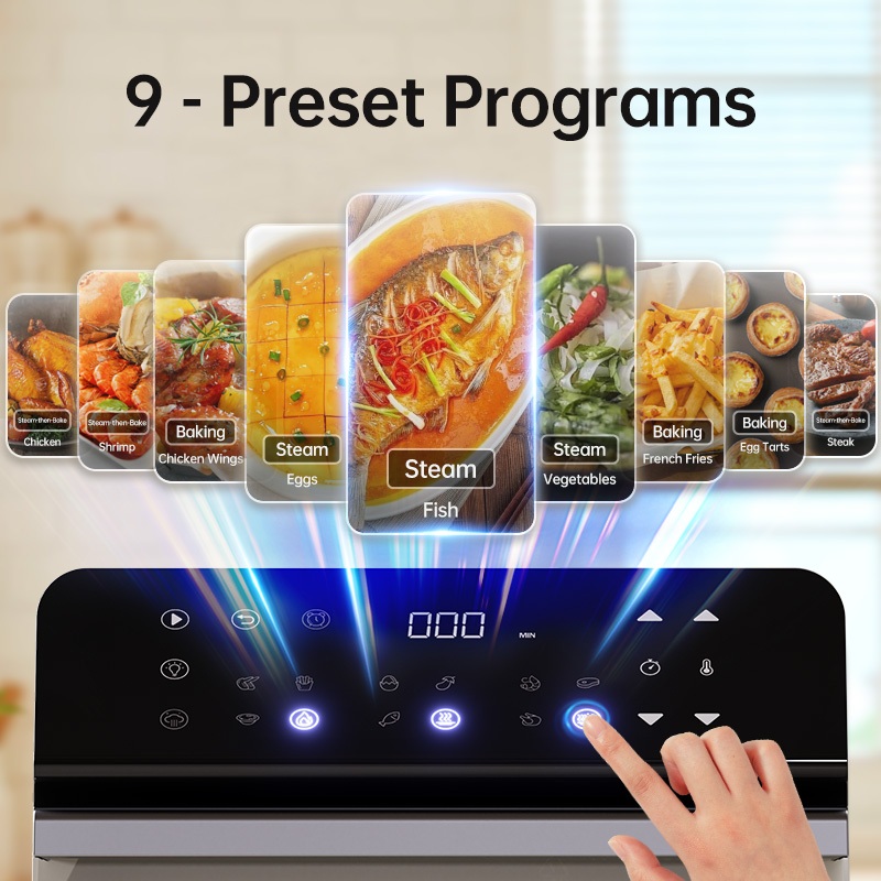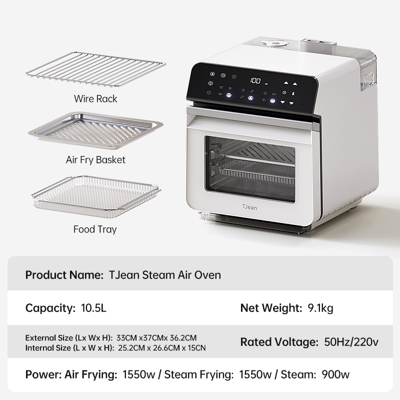 TJean 1550W Multifunctional Smart Household Visual Steam Oven Air Fryer Oven Toaster Steamed Rice&Fish Appointment Timing Heating Food 10.5L(ST101)